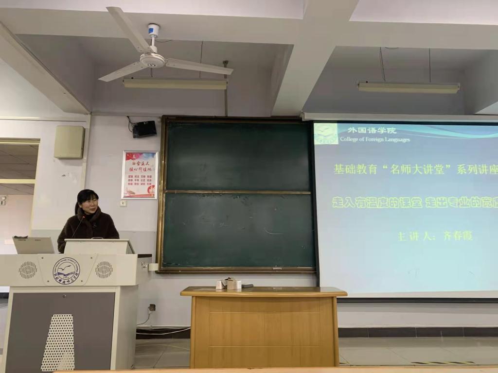 2021年12月16日下午,澳门十大信誉好的网站在综合楼312召开了“提升教师专业素养和教学能力”的专题讲座,此次讲座是十大信誉官网“名师大讲堂”的系列讲座之四。特邀主讲人为秦皇岛市第二中学高级教师齐春霞老师,齐老师是英语专业2019级的校外导师,海港区初中英语名师工作室主持人。
