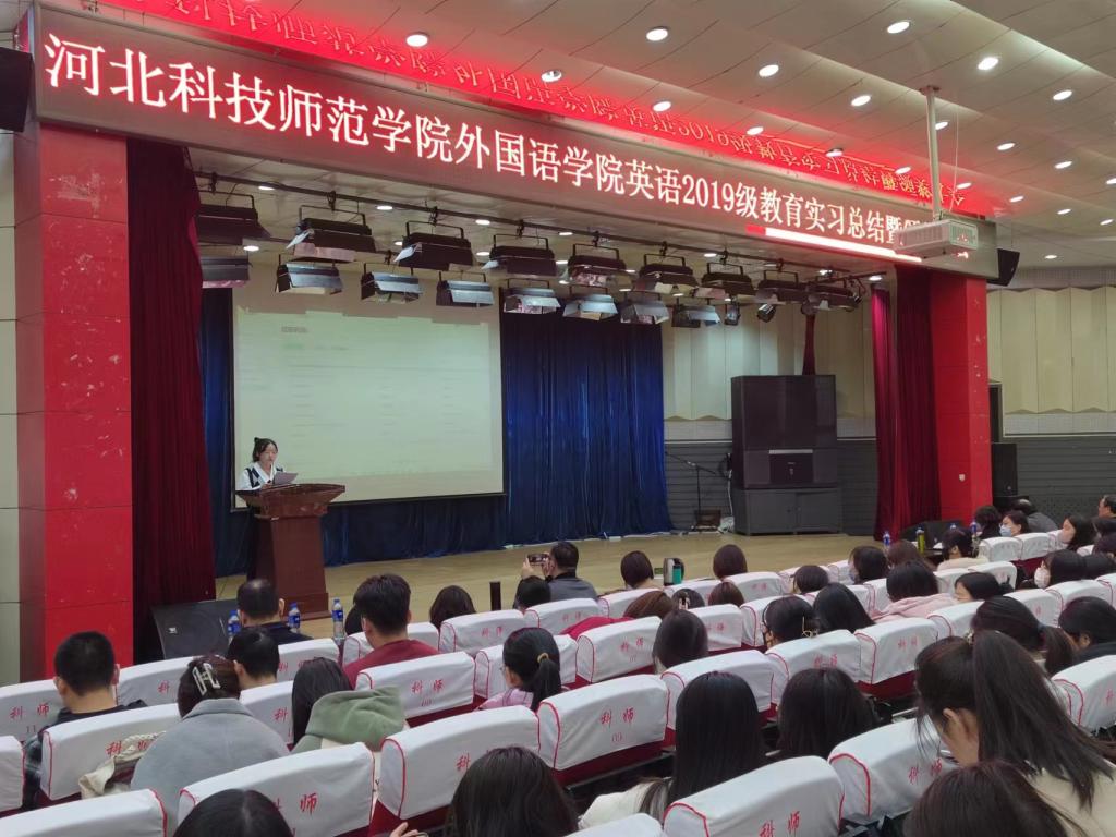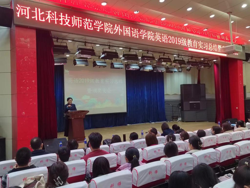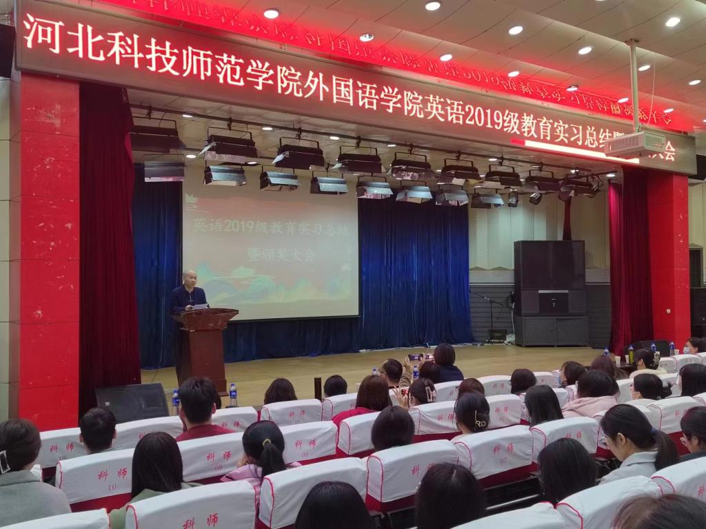 2023年3月17日下午14点,澳门十大信誉好的网站在开发区学术报告厅召开了2019级英语专业教育实习总结暨表彰大会。出席大会的有学校督导组白继海、李广臣二位老师,学院领导班子成员、英语教学部教师和学工办的全体教师、2019级英语专业学生以及部分下学期要开始实习的2020级学生代表。