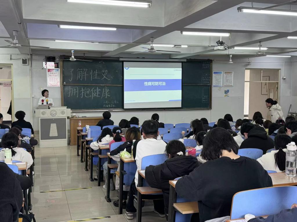 徐春云副主任围绕“科学认知,智慧防护”的主线,详细阐述了性病可防可治的理念,并对艾滋病的传播途径、暴露前预防措施、窗口期检测方法及抗病毒治疗等核心内容进行了深入剖析。通过剖析真实临床案例,生动揭示性传播疾病的隐匿传播特性与潜在健康危害,特别针对青年群体容易忽视的社交风险点进行警示教育。讲座结束时,徐主任向青年学子寄语:“健康责任始于认知,科学防护重在行动”。