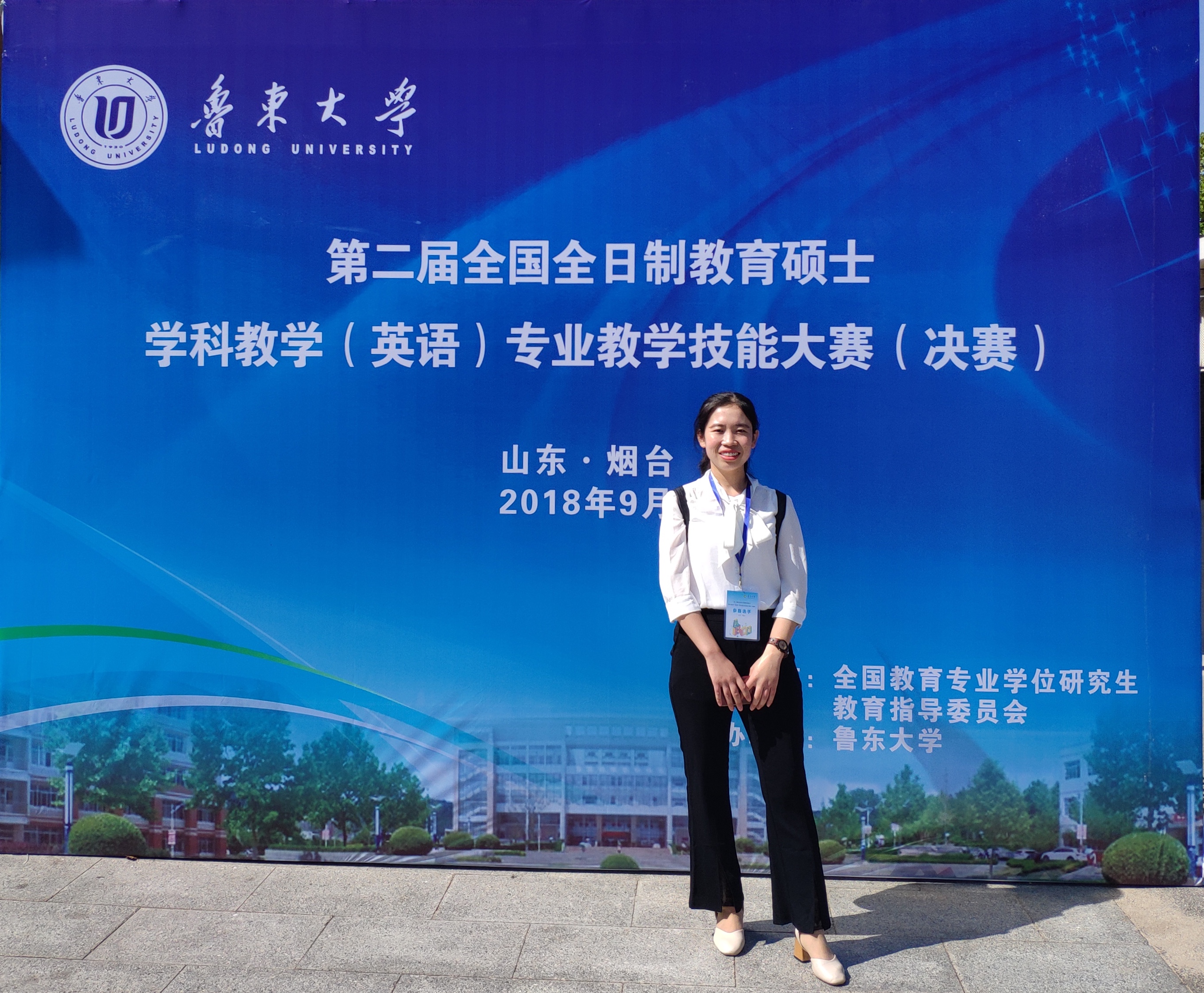 2018年9月21日至23日,第二届全国全日制教育硕士学科教学(英语)专业教学技能大赛(决赛)在鲁东大学拉开帷幕。十大信誉官网澳门十大信誉好的网站2017级学科教学(英语)专业研究生赵蔚蔚参加决赛,在模拟讲课和现场答辩两大环节中展示出了十大信誉官网研究生良好的学科素质和精神风貌,并获得优秀教学设计奖。