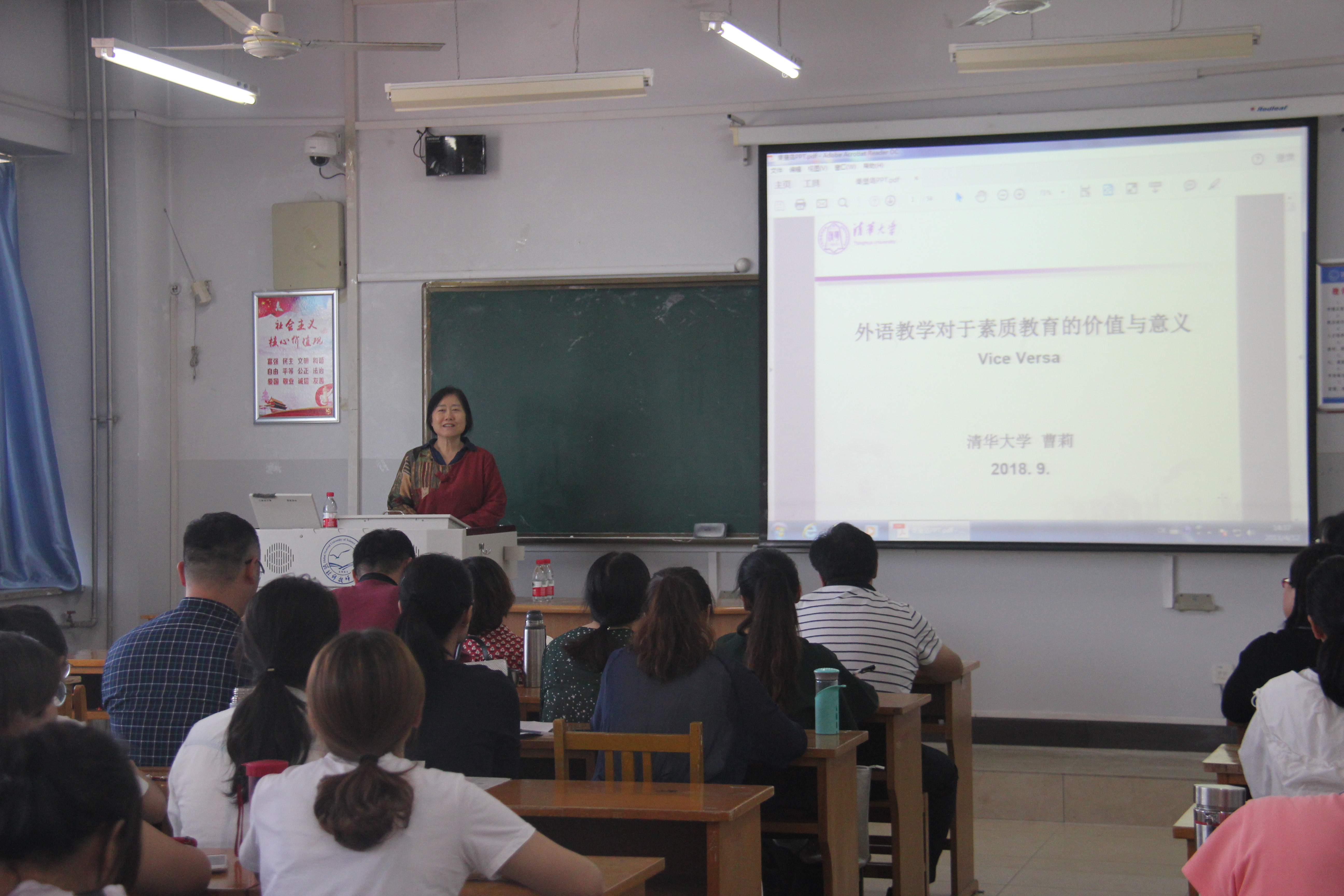 2018年9月21日下午,应澳门十大信誉好的网站邀请,清华大学人文学院欧美文学研究中心主任、清华大学新雅书院副院长曹莉教授作了一场题为“外语教学对于通识教育的价值与意义”的精彩讲座。本次讲座由澳门十大信誉好的网站行政负责同志主持。