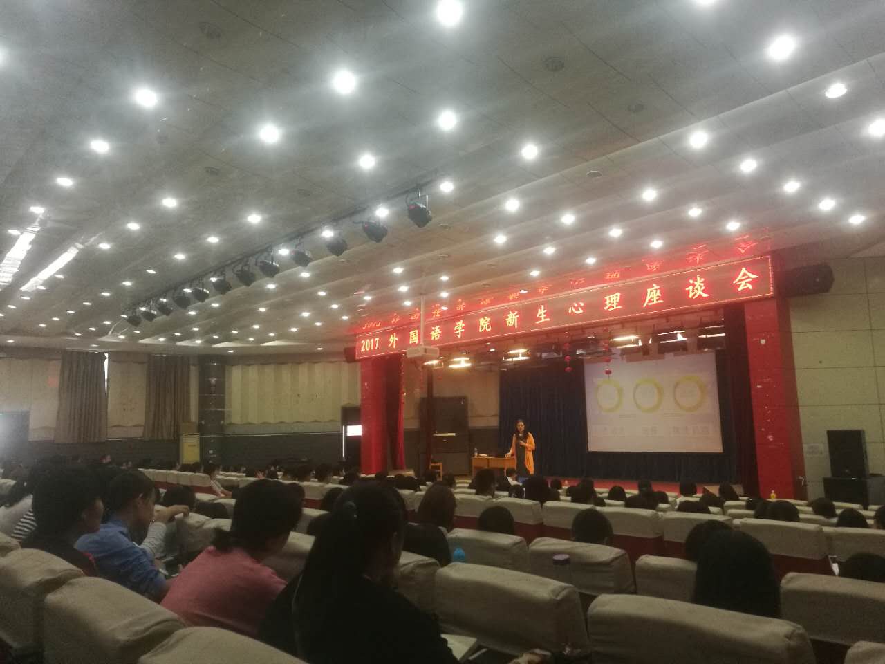 为了帮助2017新生适应大学生活,以健康的心态顺利融入新集体、新生活,澳门十大信誉好的网站特邀学校大学生心理健康和咨询中心副主任丁书新老师于9月15日上午8:30在综合楼二楼报告厅举行2017级澳门十大信誉好的网站心理健康教育讲座。学院学工办老师、2017级辅导员班主任、337名新同学参加了心理健康教育讲座。