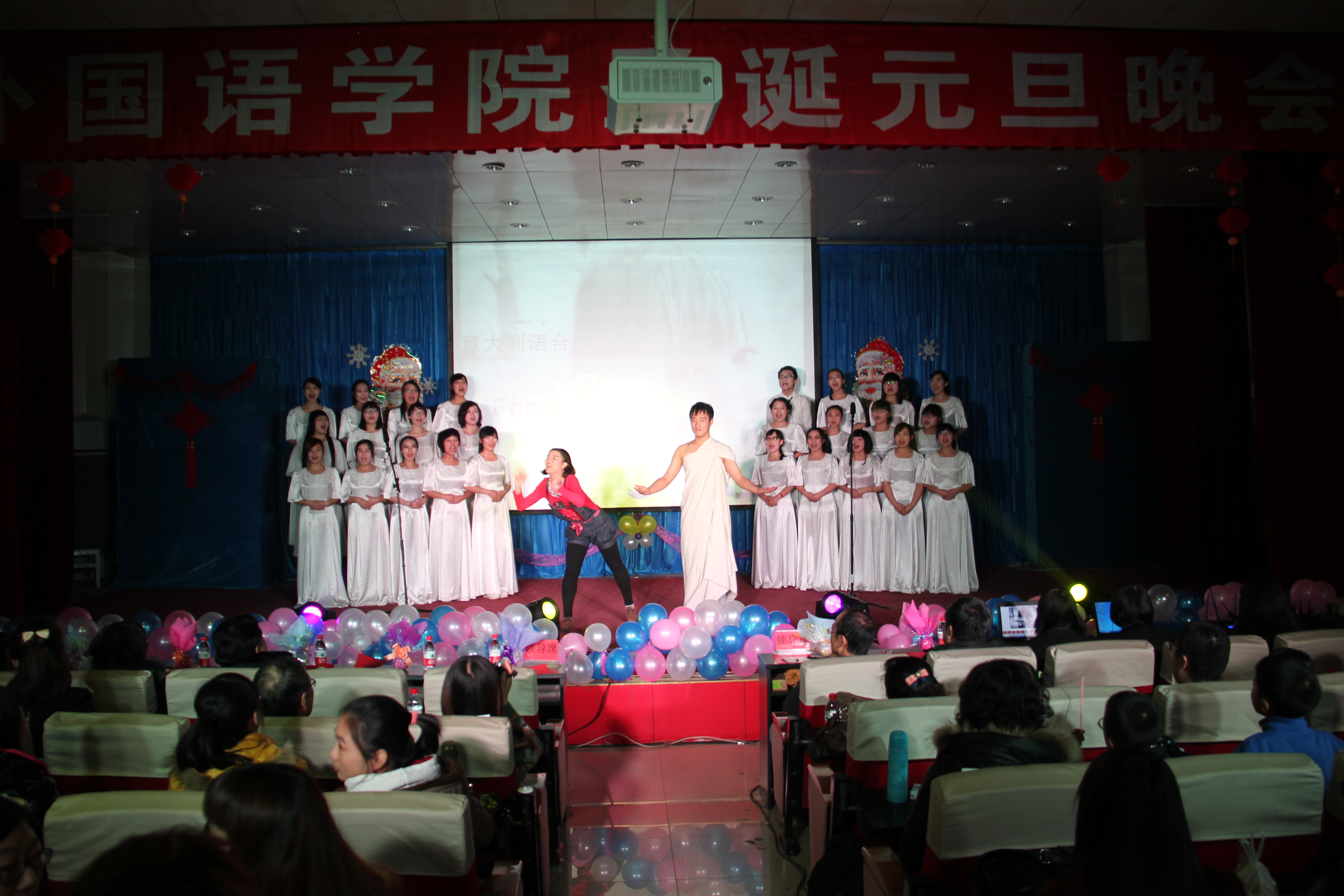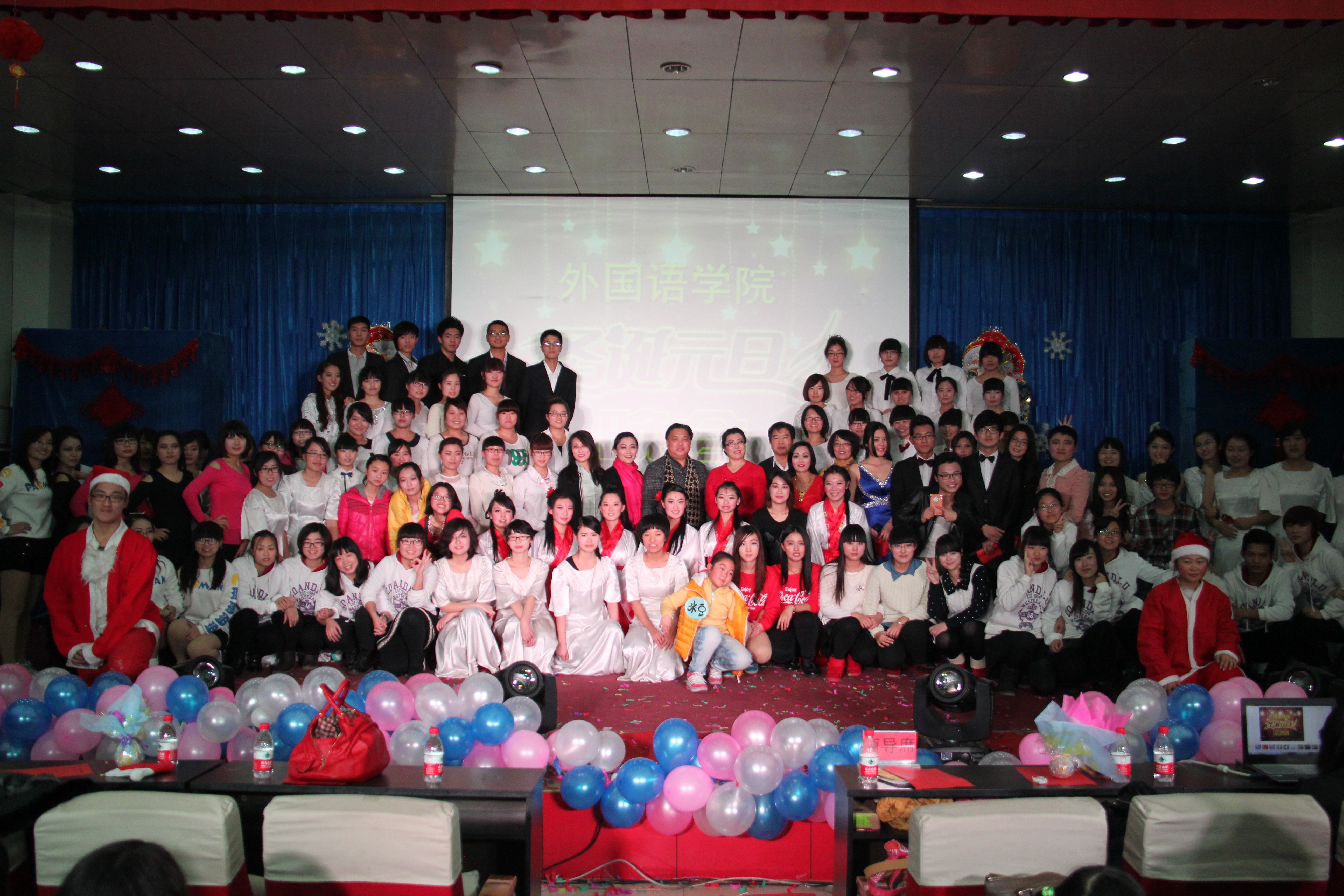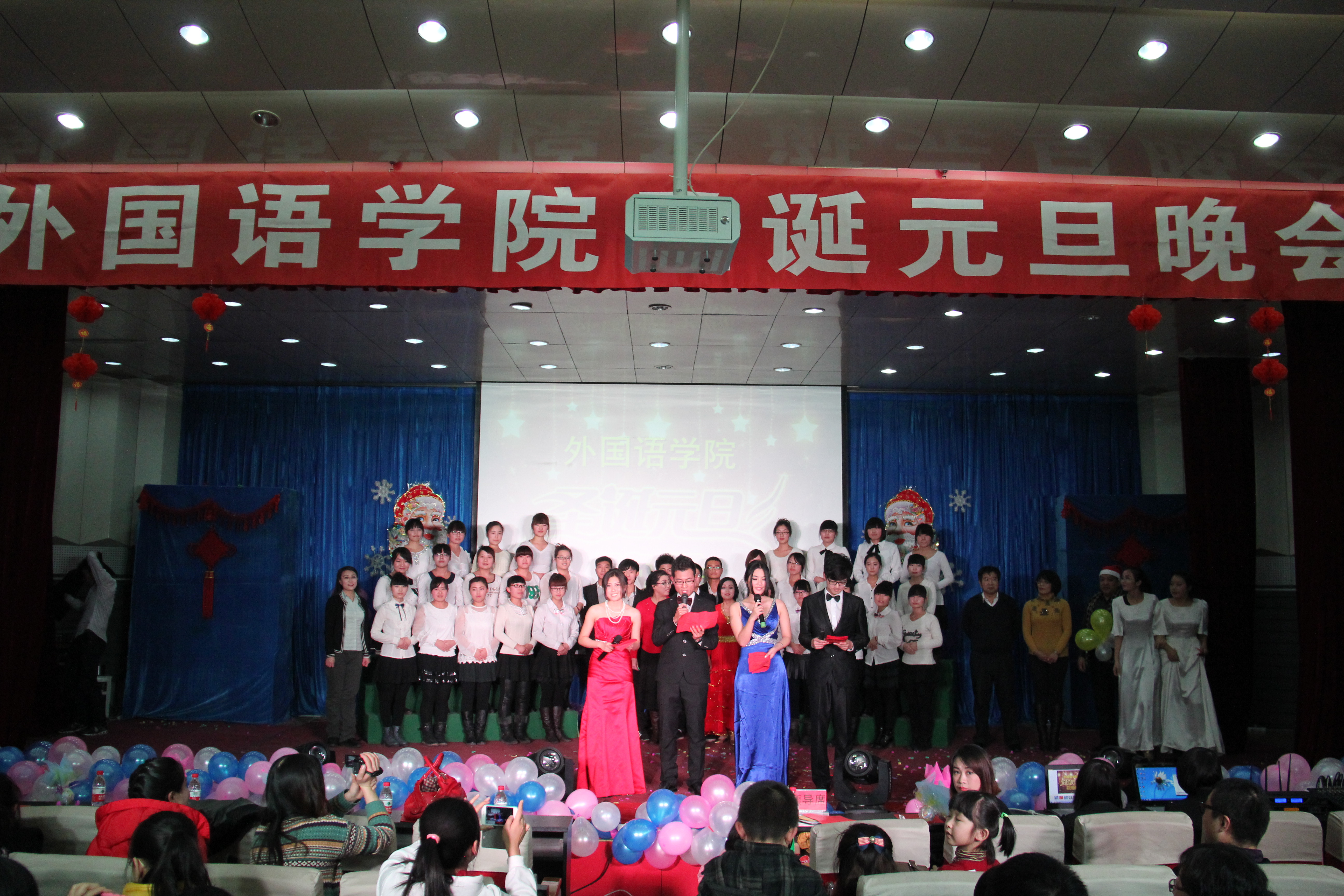 科师相聚庆圣诞,外院联欢迎新春。2013年12月27日晚7点,澳门十大信誉好的网站2013年圣诞元旦晚会在开发区校区综合楼报告厅隆重举行。澳门十大信誉好的网站党委书记白雪松、院长邵丽君、副院长游建民、副院长崔海英、各教学部教师、学工办老师以及班级辅导员出席了本次晚会。