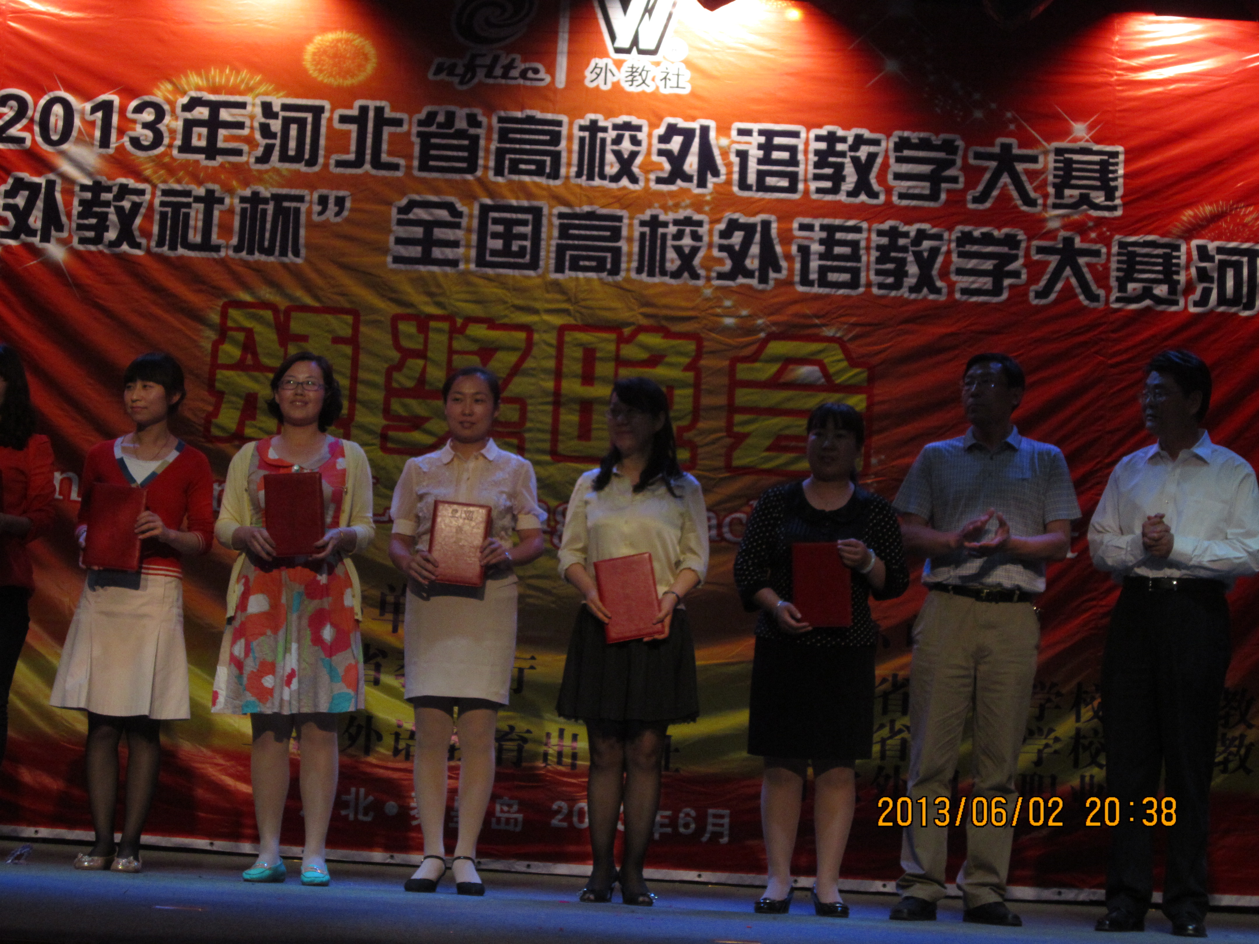 十大信誉官网教师在2013年6月1-2日河北外国语职业学院举行的河北省高校外语教学大赛暨第四届“外教社杯”全国高校外语教学大赛河北赛区总决赛中表现优异,经过激烈角逐十大信誉官网澳门十大信誉好的网站教师张琛获得大赛二等奖,澳门十大信誉好的网站教师韩庆山、付蕊获得大赛三等奖。