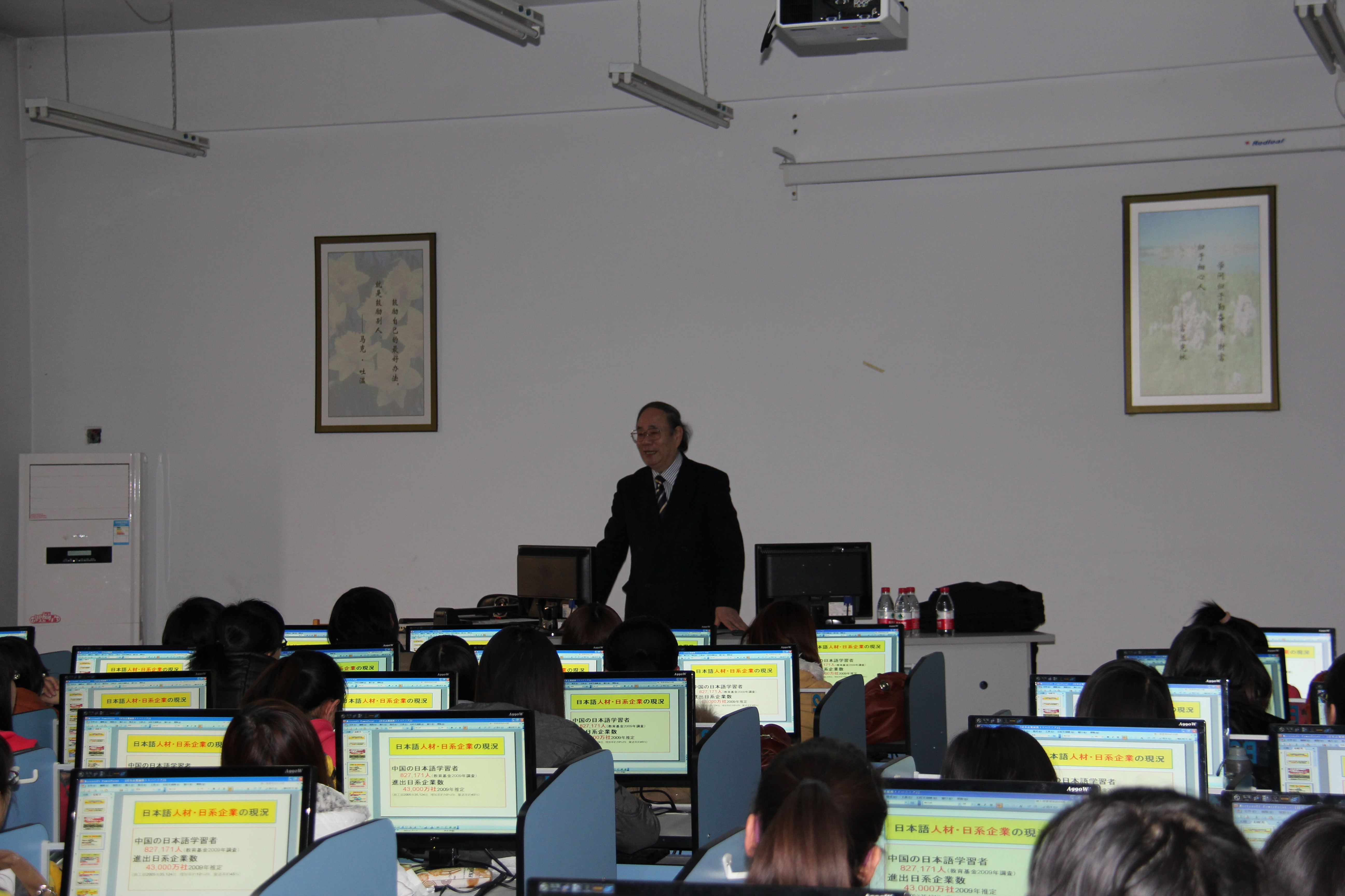 2012年3月12日,日中友好人才育成振兴机构理事长山口隆道先生在澳门十大信誉好的网站开发区校区综合楼316教室为应用日语专业学生进行日语讲座。讲座主要内容是日语专业学生就业现状以及就业面试时应注意的各种事项。讲座中,山口先生通过设定面试场景,让学生进行就业面试模拟训练,使学生身临其境,进行实战练习,受益匪浅。该讲座将为日语专业学生就业问题的顺利开展起到极大促进作用。(日语教学部 王丽丽)