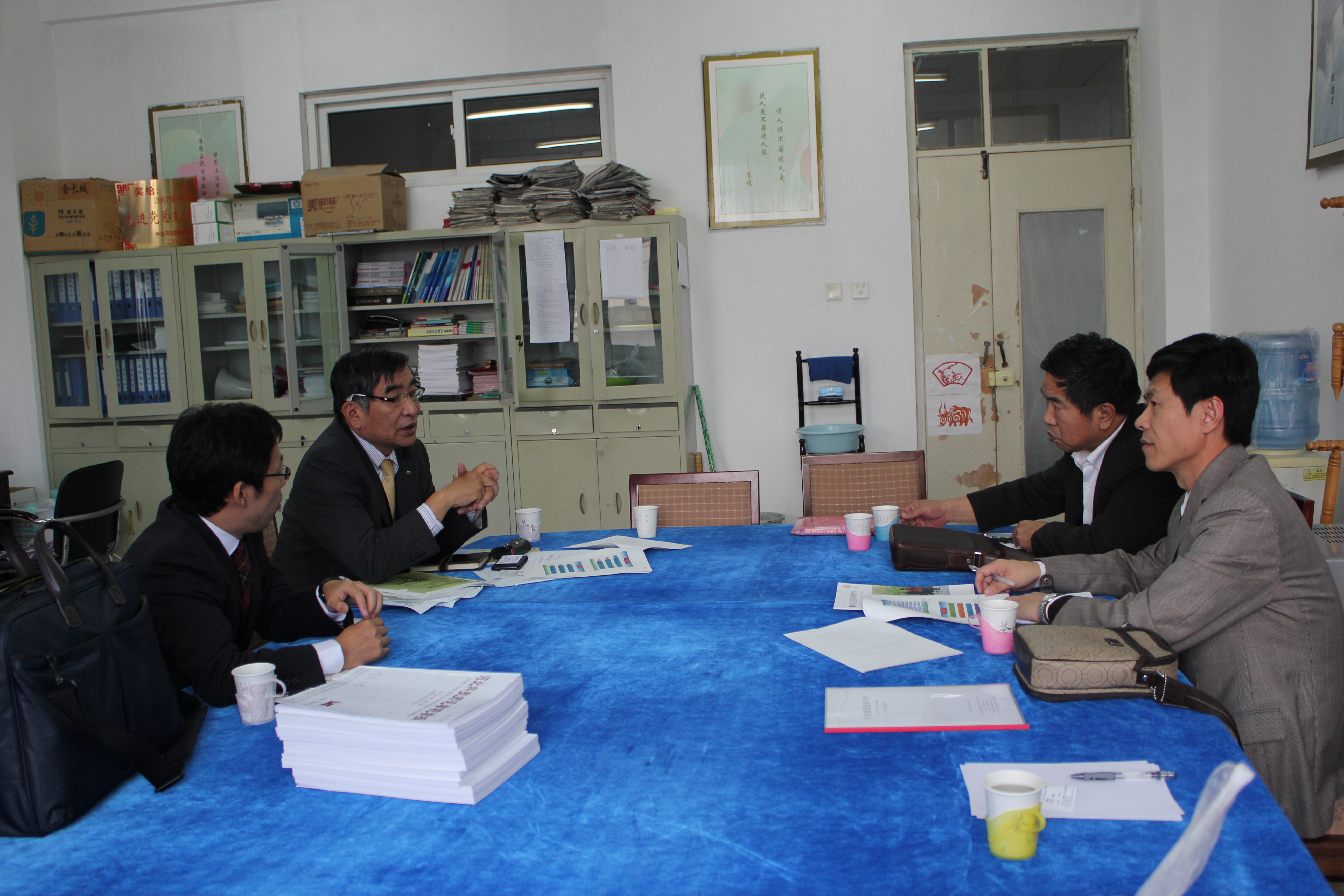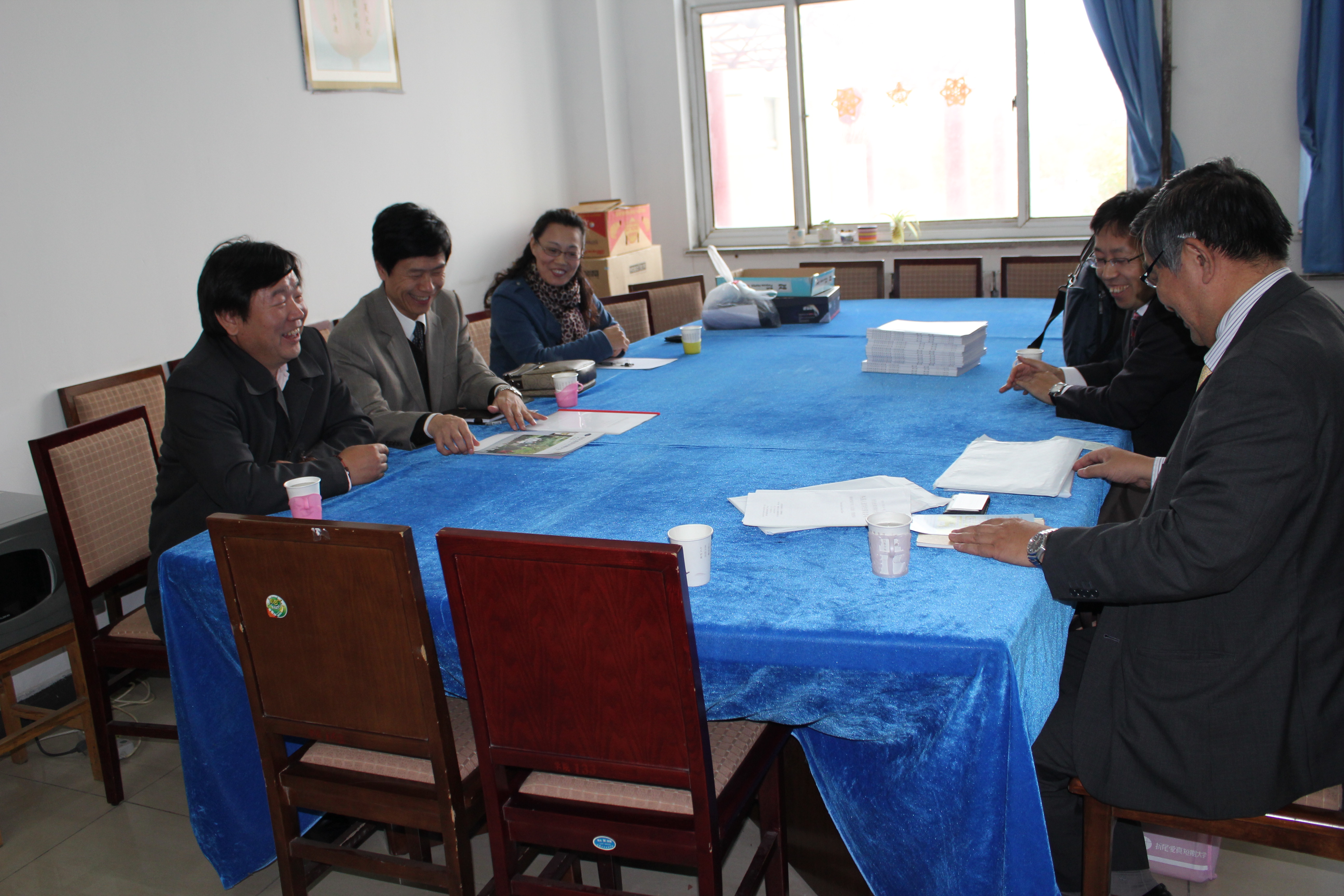 11月7日,日本折尾爱真短期大学市川教授一行两人来十大信誉官网考察、讲学。国际交流处东方阳处长、十大信誉官网游建民副院长、崔海英副院长和日语教学部主任崔基元老师会见了市川教授等人。