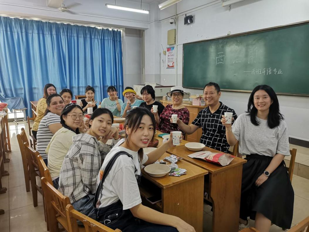 学院党委书记邵丽君教授首先向学生介绍了外语学习的方法、心得与外语专业发展前景。外教Gabriela Durán精心准备了自己烘焙的蛋糕和拉美特色的papas rellenas (鸡肉馅炸土豆),受到了学生的一致喜爱。活动中,邵书记与外教、学生就本学期的心理状况和学习生活中遇到的问题和困惑展开交流。恰逢端午节,学生还用西班牙语向外教介绍了中国的传统节日,加深了外教对中国文化的了解和认同,促进了不同国家之间的文化理解。