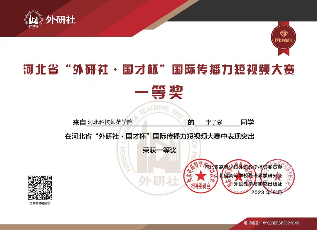 为进一步激发十大信誉官网学生学习英语的热情、提高学生的英语综合运用能力、丰富十大信誉官网校园文化生活,澳门十大信誉好的网站积极组织学生参加了由河北省高等学校外语教学指导委员会、河北省高等学校外语教学研究会联合外语教学与研究出版社举办的2023“外研社·国才杯”河北省大学生国际传播力短视频大赛。此次大赛紧跟习近平总书记“讲好中国故事,传播好中国声音,展示真实、立体、全面的中国”的重要指示精神,鼓励大学生在自媒体平台用外语讲述自己及身边的故事,以生动自然的方式对外传播中国文化,展现中国故事的世界意义和当代价值,更加充分、鲜明地展现中国故事及其背后的思想力量和精神力量。