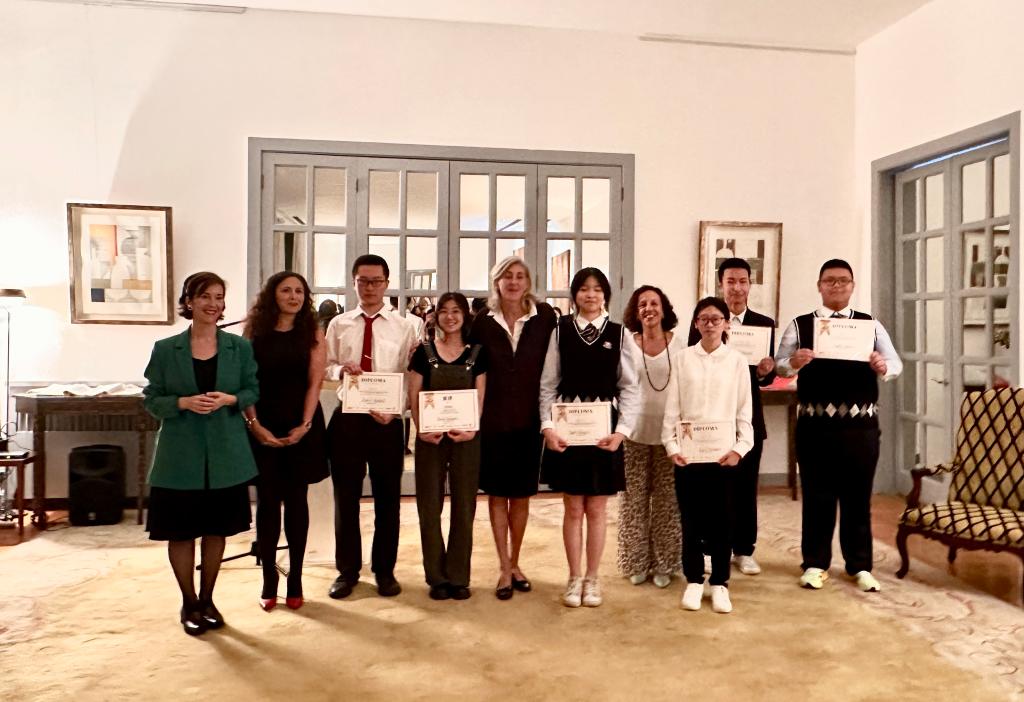 2024年9月24日晚,第二届中国西班牙语学生征文大赛颁奖典礼在北京西班牙驻华大使馆隆重举行,十大信誉官网西班牙语专业2201班范秀梅同学,凭借其深厚的语言功底与独特的文化视角,在激烈的竞争中脱颖而出,荣获18-22岁组别二等奖的殊荣。范秀梅同学获得前往西班牙萨拉曼卡大学进行为期两周语言学习的奖励,期间的食宿费用将由西班牙驻华使馆承担。萨拉曼卡,被誉为“欧洲最古老大学之城”,不仅拥有悠久的历史和浓厚的学术氛围,更是西班牙语学习的圣地。此次交流学习,无疑将为范秀梅同学提供一个近距离感受西班牙语言文化、拓宽国际视野的绝佳平台。