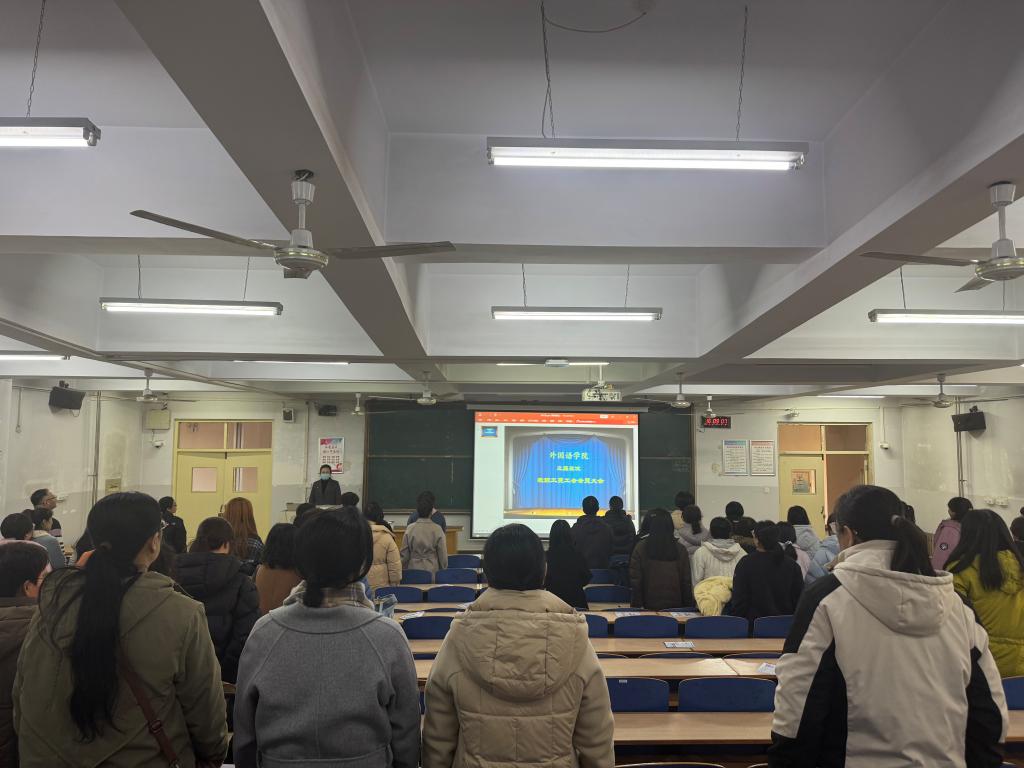 12月5日下午,澳门十大信誉好的网站第三届教职工暨工会会员大会第五次会议在综合教学楼412教室召开,会议主题为“创师范特色 谋长足发展 奋力开创外语育人新篇章”,全院教职工参加了会议。
