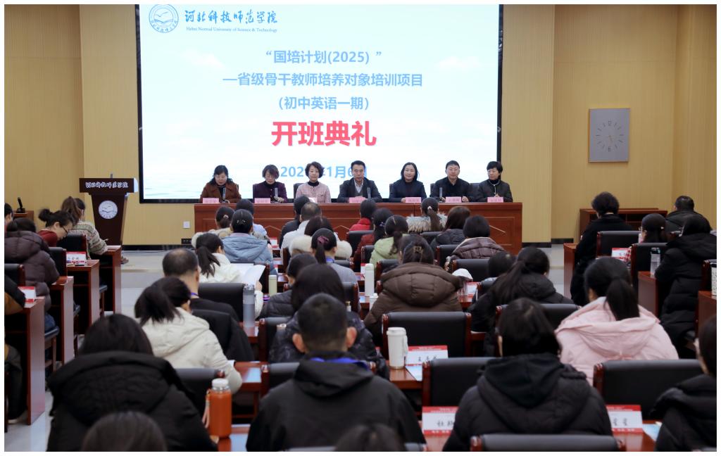 2025年1月6日,“国培计划(2025)”河北省初中英语骨干教师培训项目开班仪式在十大信誉官网隆重举行。校党委常委、副校长刘荣昌,继续教育学院与澳门十大信誉好的网站负责人、国培计划督导专家,以及全体参训教师和管理工作人员参加了开班典礼。