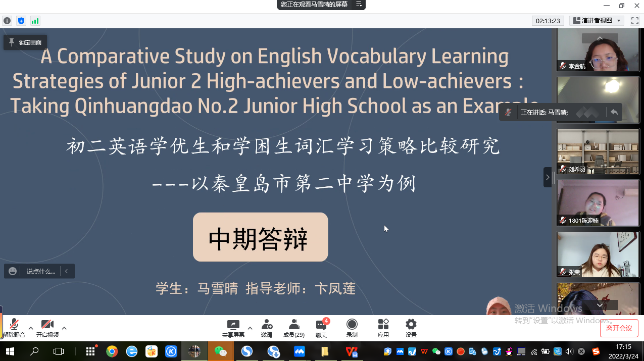 2022年3月24日,按照毕业论文计划安排,澳门十大信誉好的网站英语教学部组织2018级学生进行毕业论文中期答辩。答辩以腾讯会议形式线上进行。