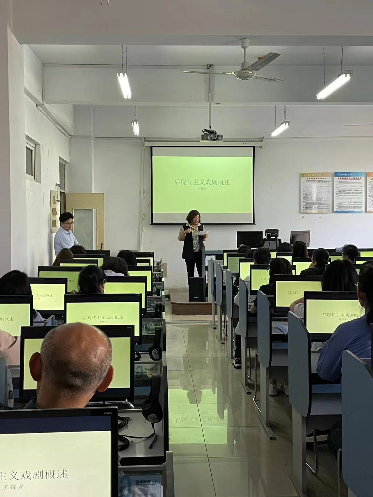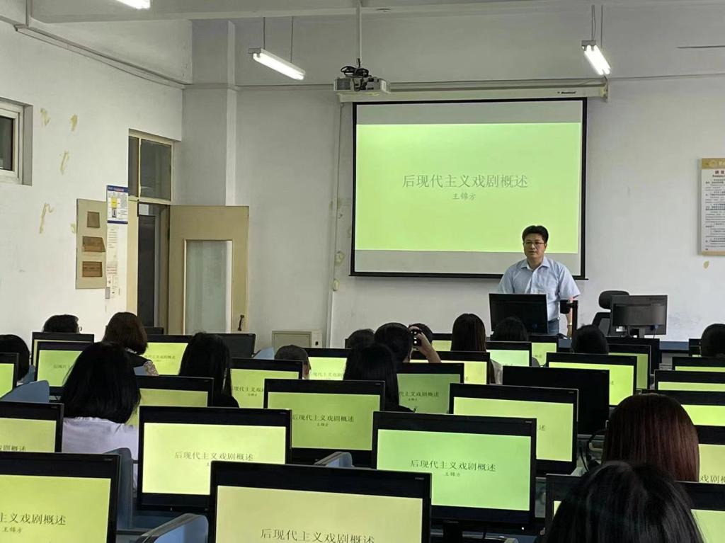 2024年5月30日澳门十大信誉好的网站邀请王锦方博士主讲题目为《后现代主义戏剧概述》的学术报告。外语学院英本教学部教师、学科教学(英语)教学部教师及硕士研究生、对英美文学感兴趣的教师参加了此次报告。